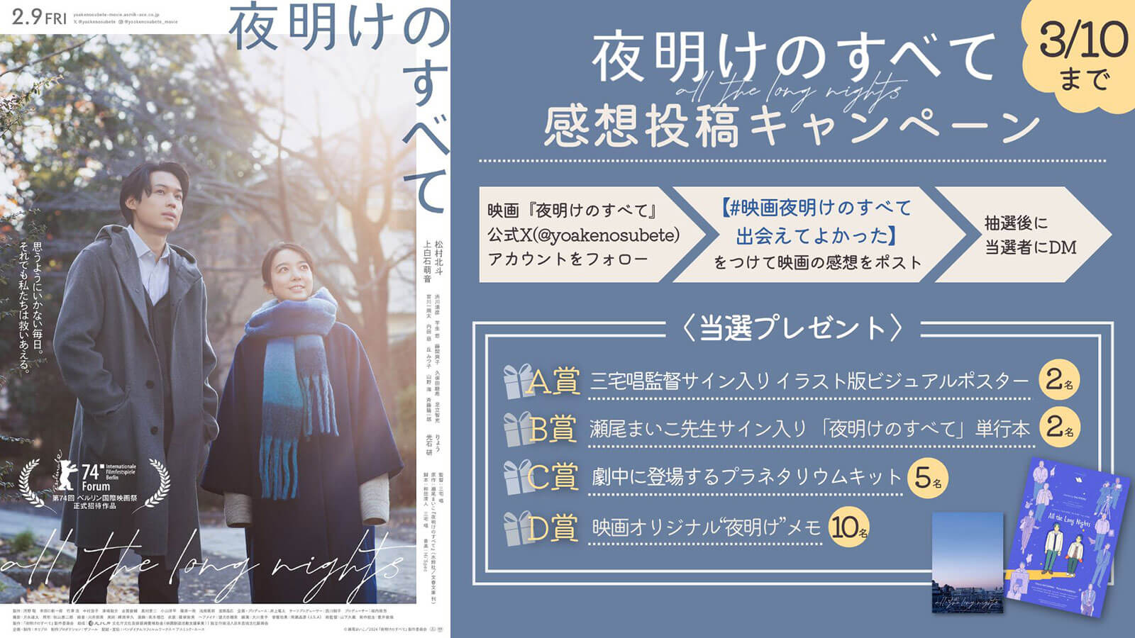この度、映画『夜明けのすべて』公式X(旧Twitter)で原作感想&期待コメント投稿キャンペーンを実施いたします。